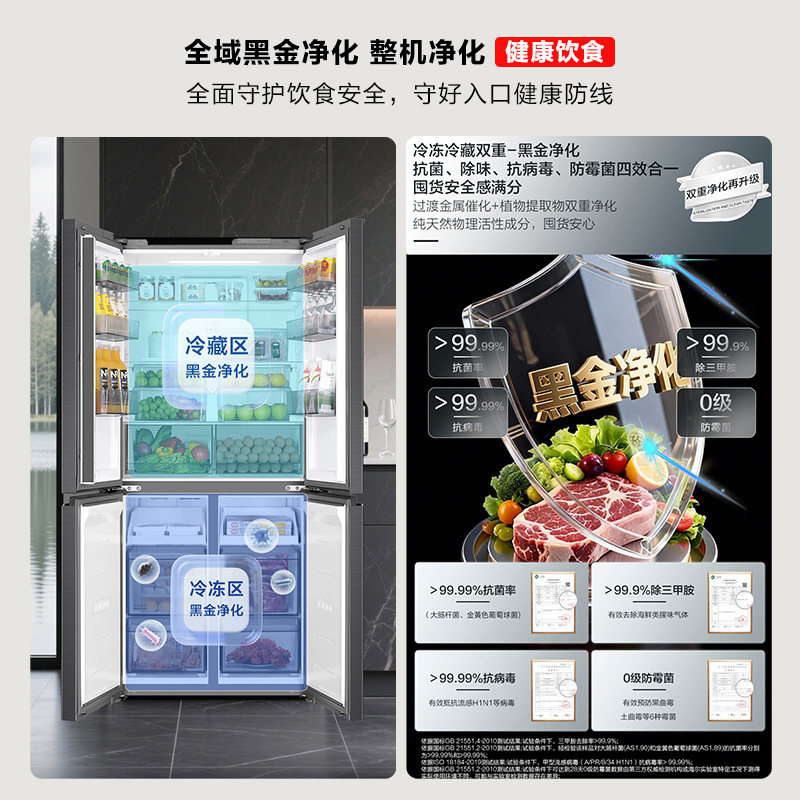 美的华凌神机547双系统超薄零嵌入式十字双开四门家用一级冰箱