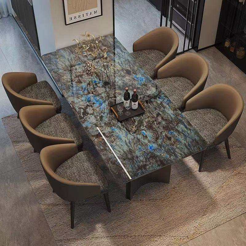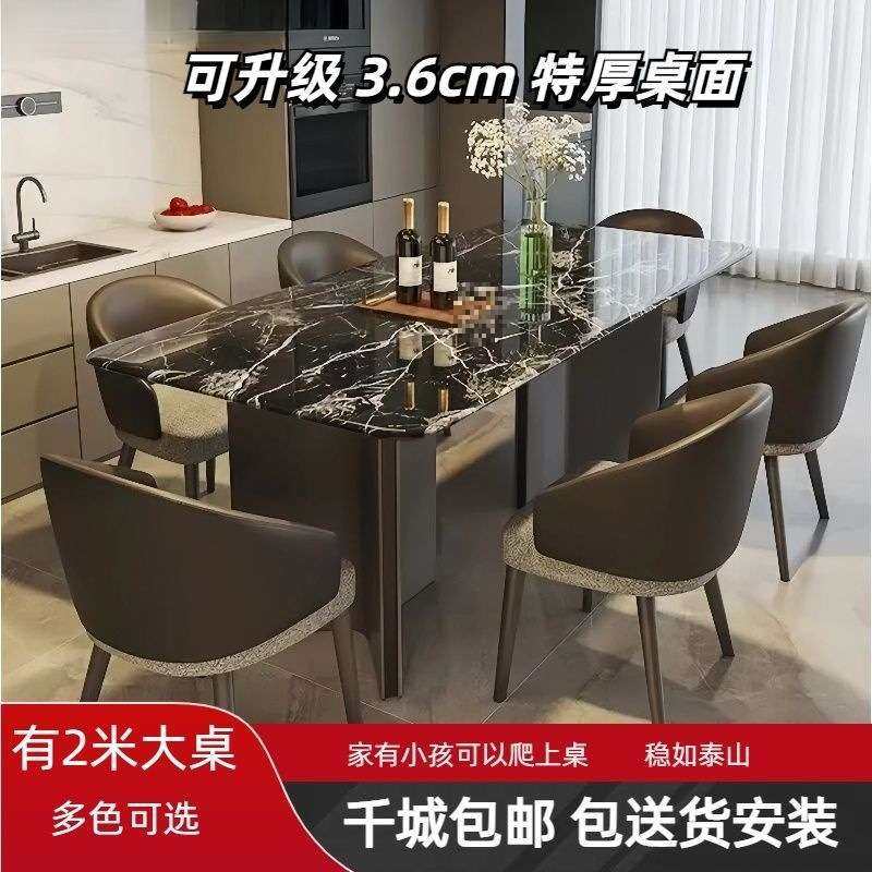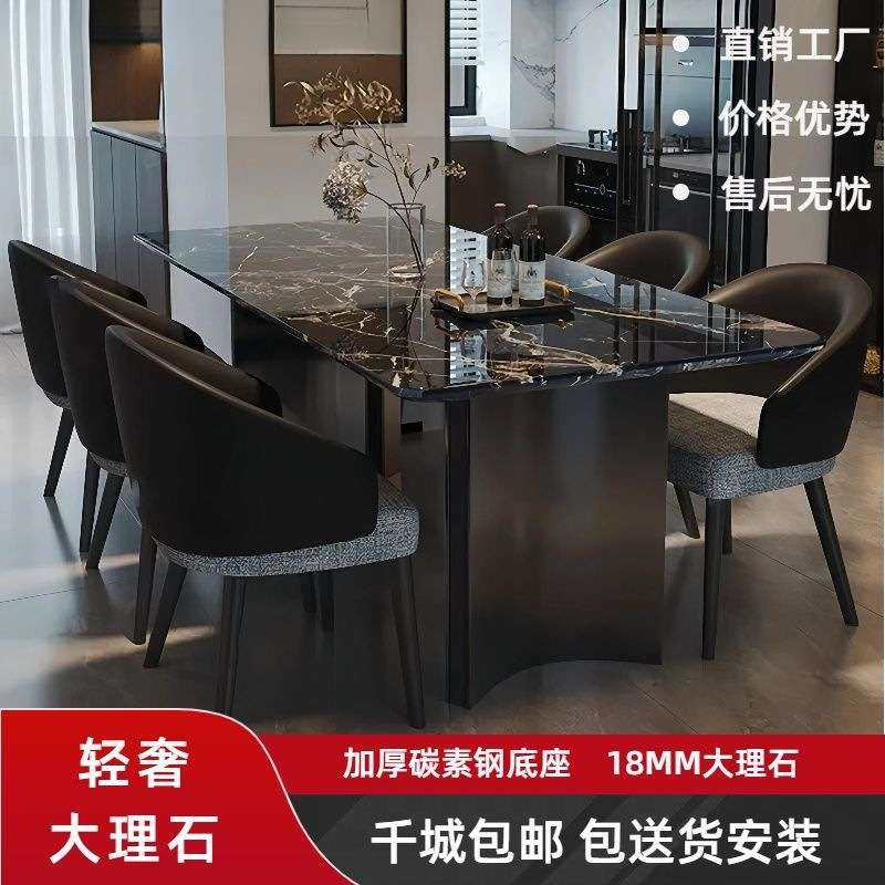 现代简约意式高端别墅户型家用长方形餐桌餐椅组合轻奢大理石餐桌