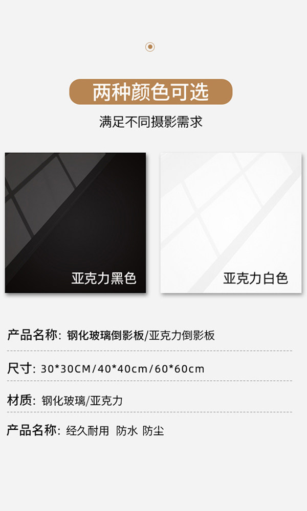 拍摄倒影黑色亚克力板镜面白色钢化玻璃拍照背景板反光板美食戒指静物珠宝台拍摄底板反光首饰摄影背景道具