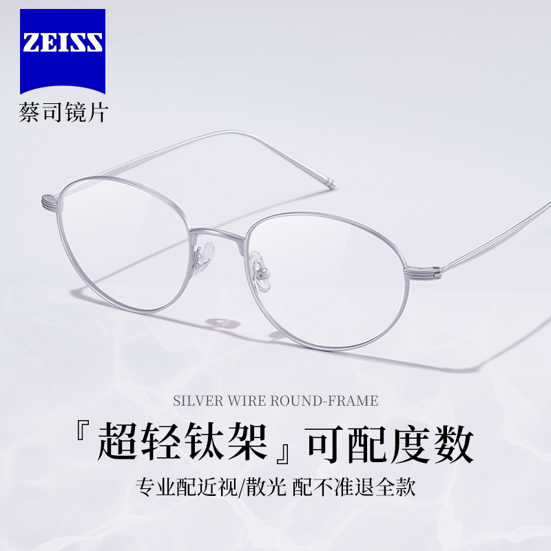 德国蔡司眼镜近视男眉框散光纯钛超轻镜片定制度数可配蓝光女镜框