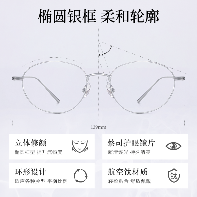 依视路镜片超轻银丝圆框眼镜女