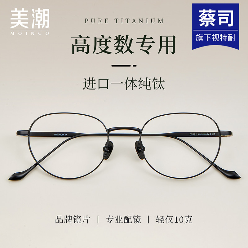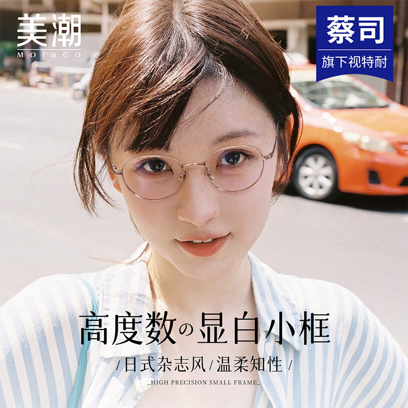 高度近视眼镜女可配度数防蓝光素颜显白小框超轻纯钛加宽边框镜架