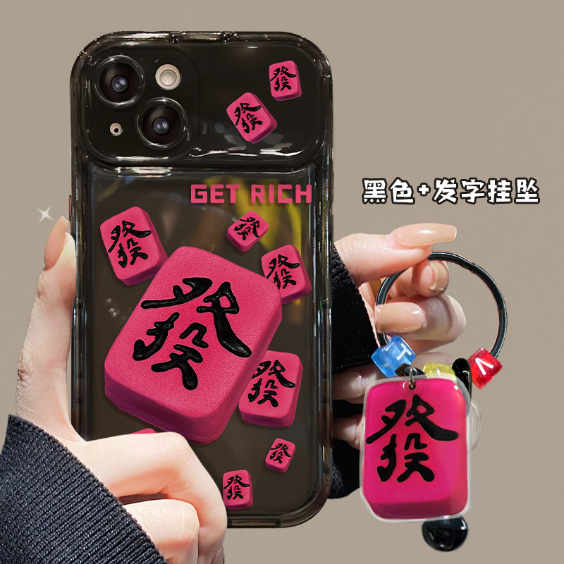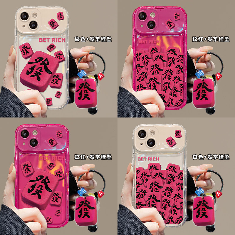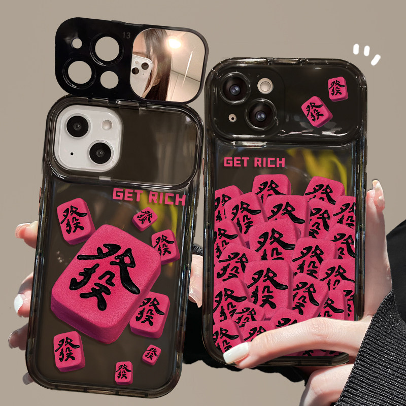 适用苹果17Promax手机壳iPhone14/16创意13新女款11/12mini麻将發挂坠xr/xs翻盖镜子8/7plus透明硅胶6s保护套