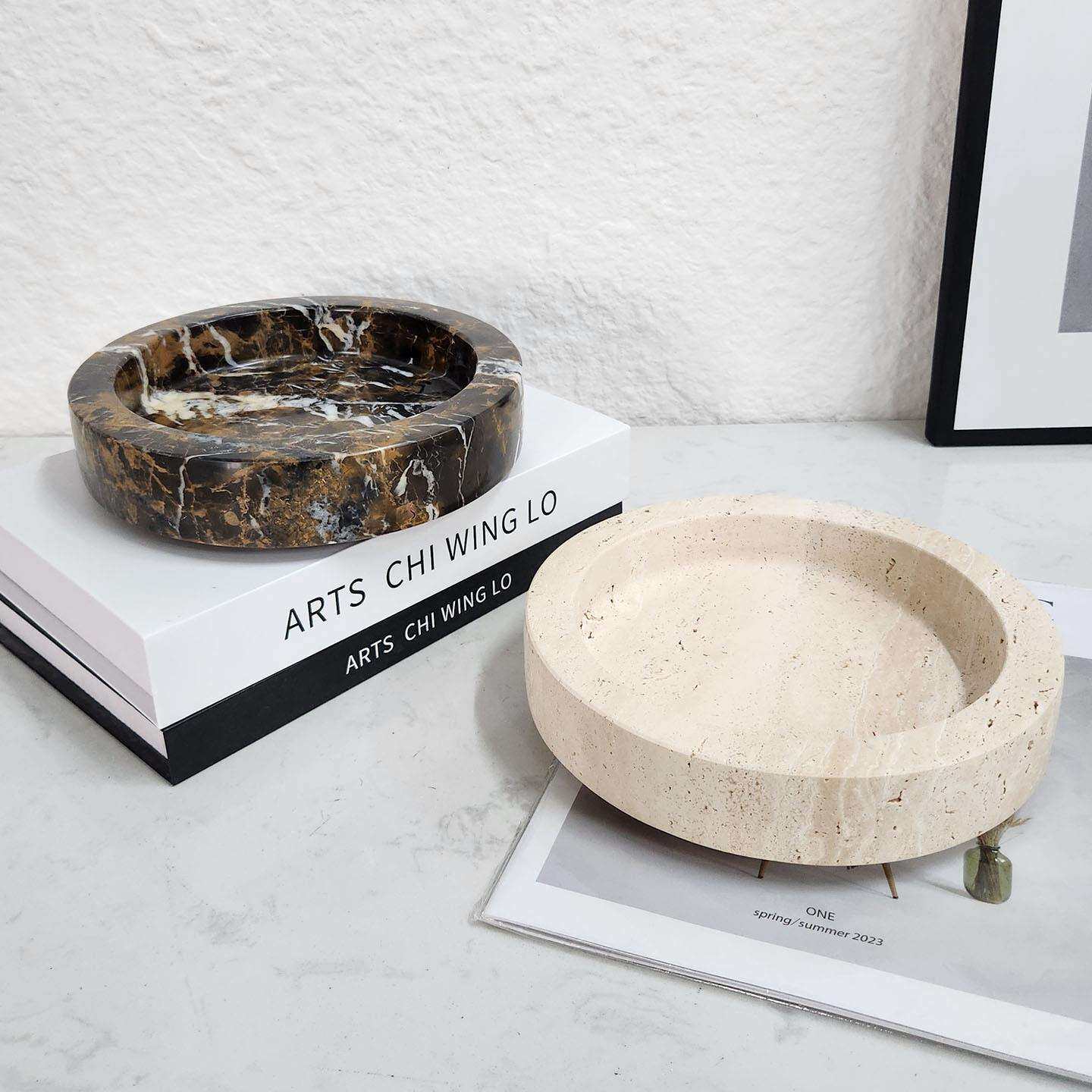 轻奢风天然大理石绿植花盆售楼部茶几植物花器软装家居置物摆件