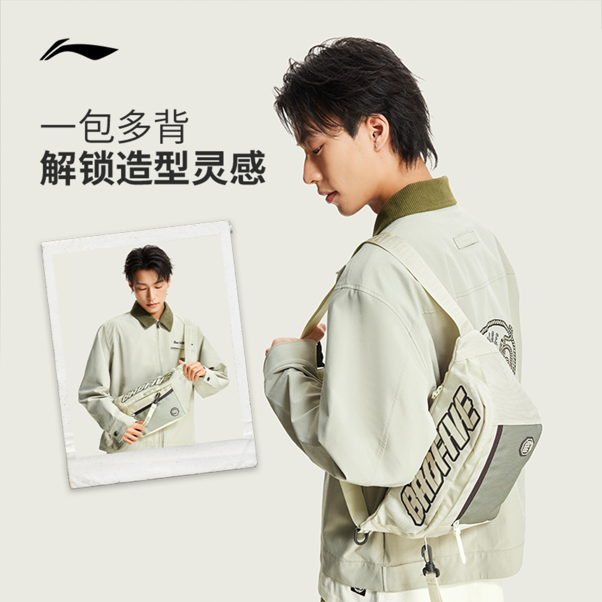 李宁反伍斜挎包2026新款男包正品潮酷黑色通勤轻便反光运动单肩包