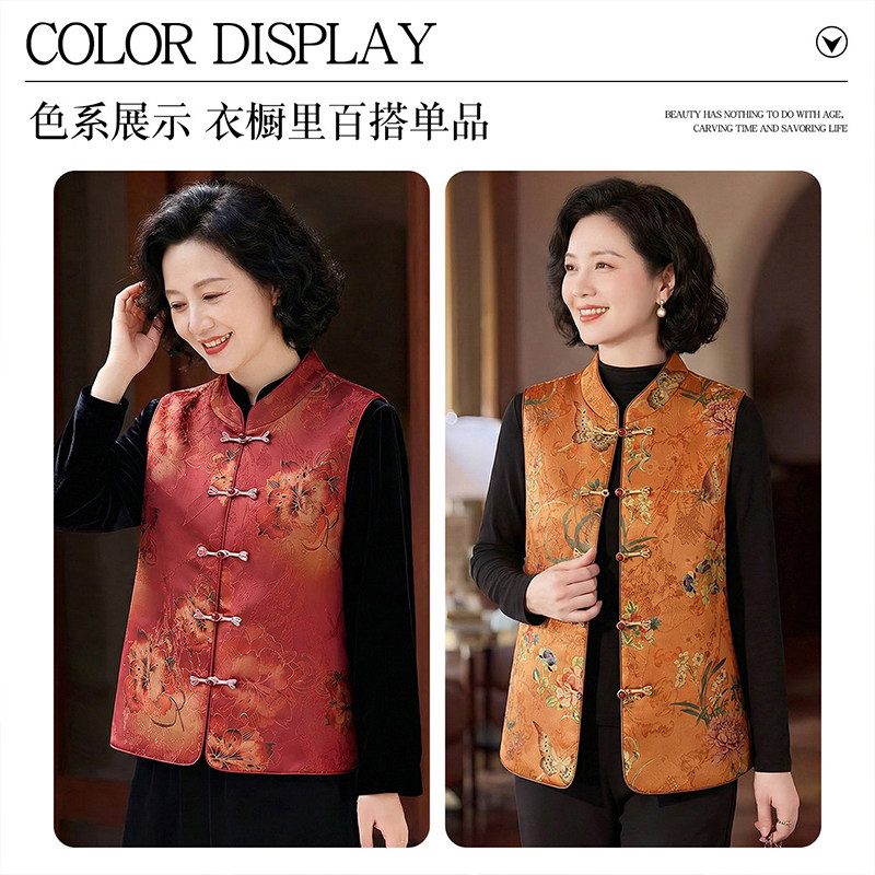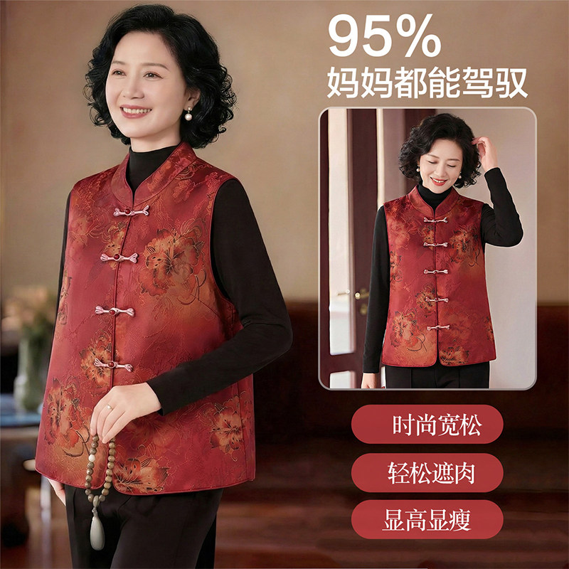 雅鹿中年妈妈春装新中式马甲中老年人女春秋季上衣国风马夹外套