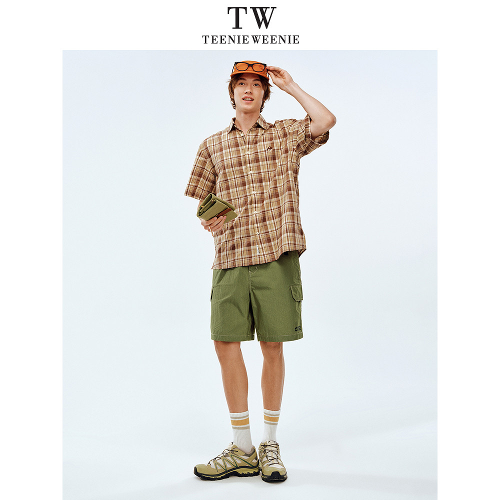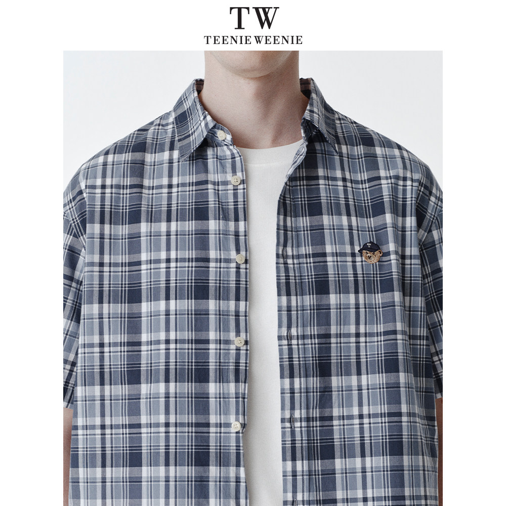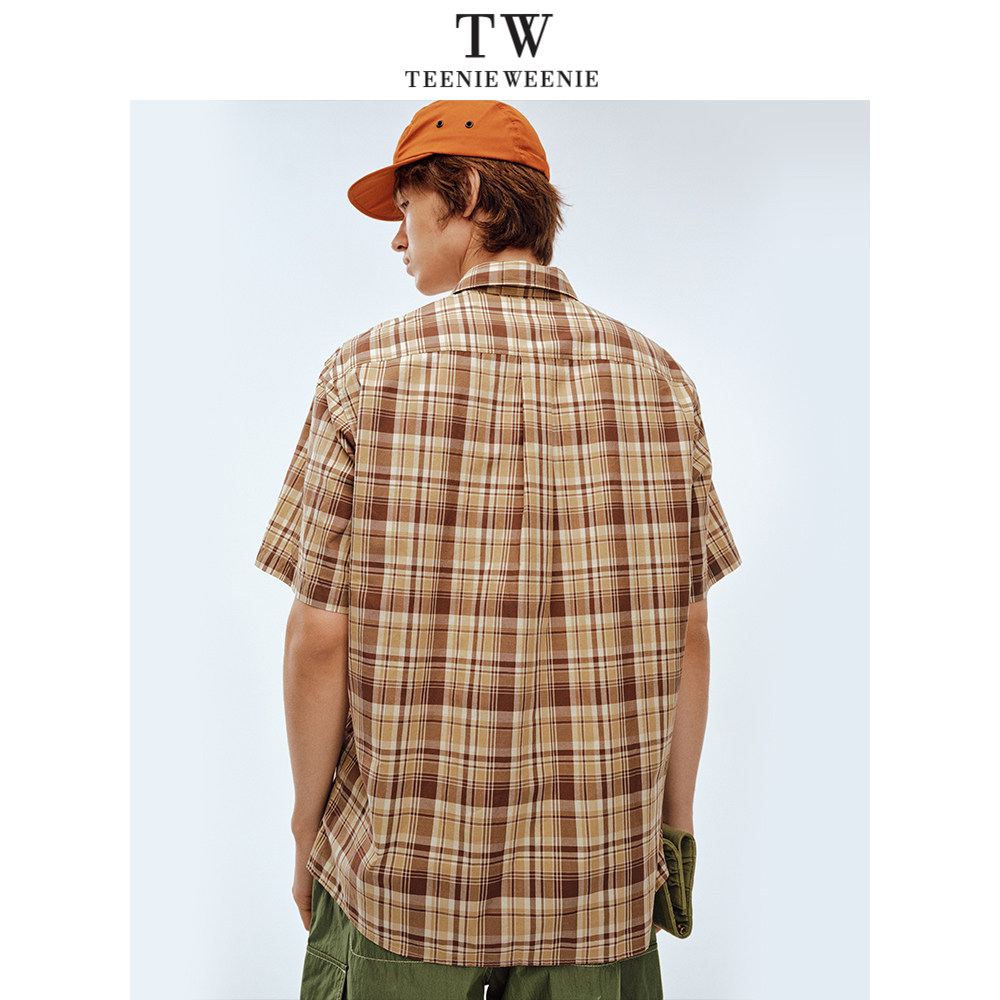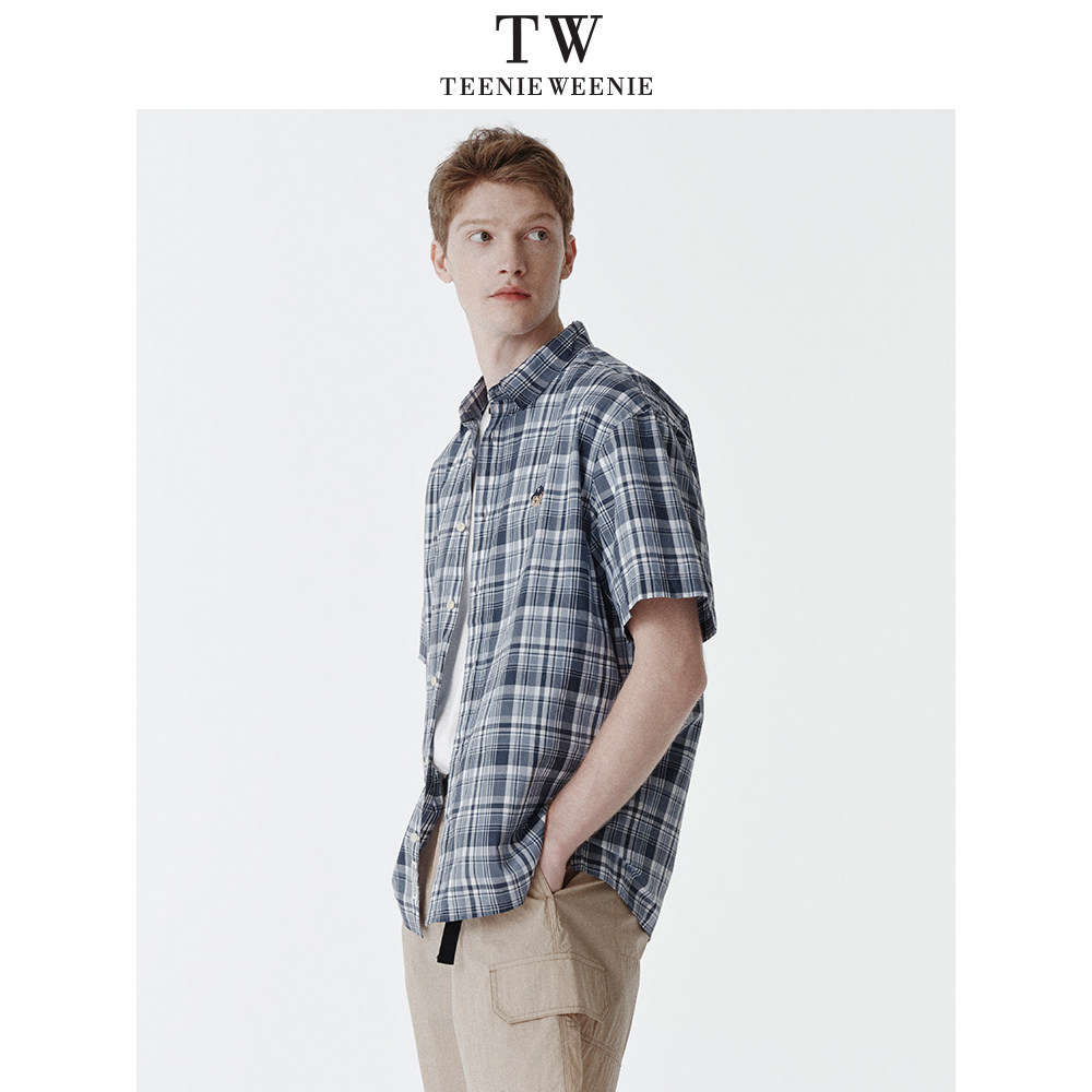Teenie Weenie小熊男装休闲全棉舒适色织格纹短袖衬衫2026年春