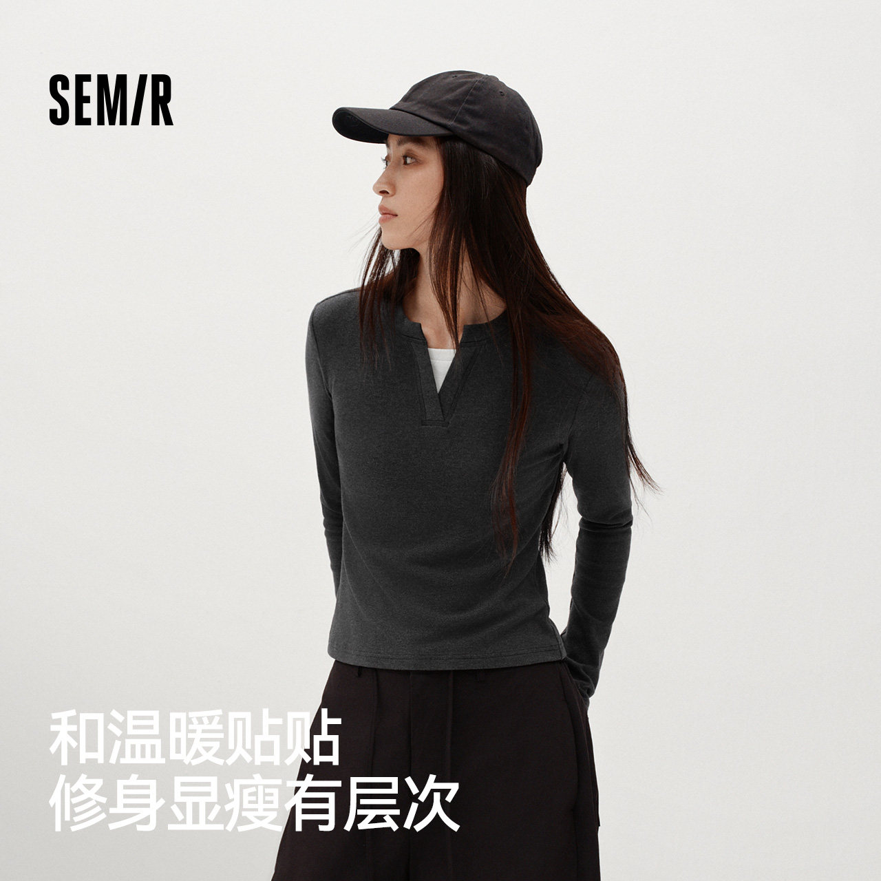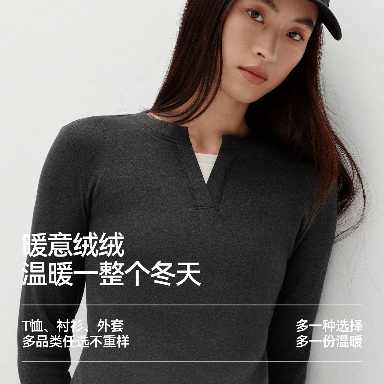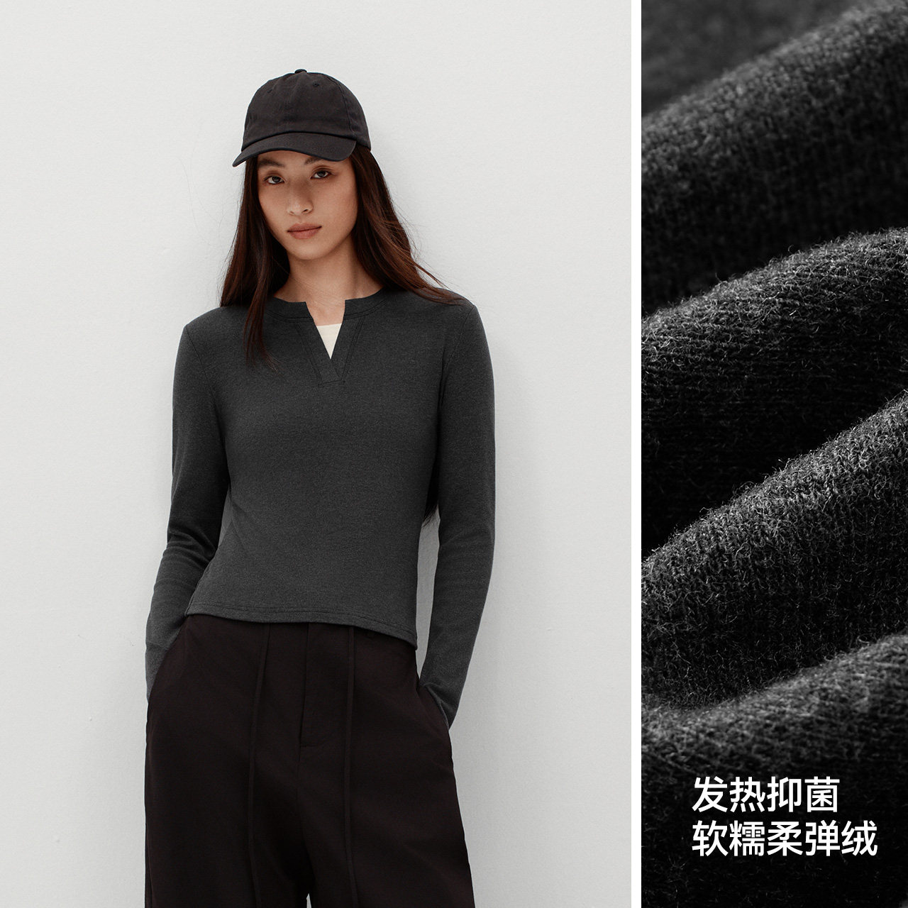 商场同款|森马长袖T恤女冬季发热抑菌抓绒修身假两件2025新款衣服