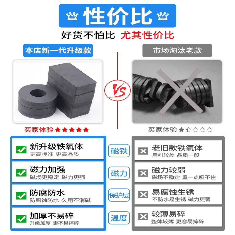 铁氧体磁铁圆环大号强磁力吸铁石高强度磁性耐高温磁吸黑色喇叭磁