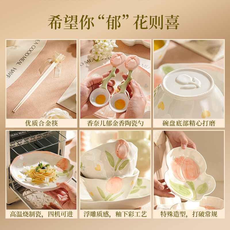 高端女士个人专用碗清新碗碟套装一人食餐具套装陶瓷碗筷漂亮餐具