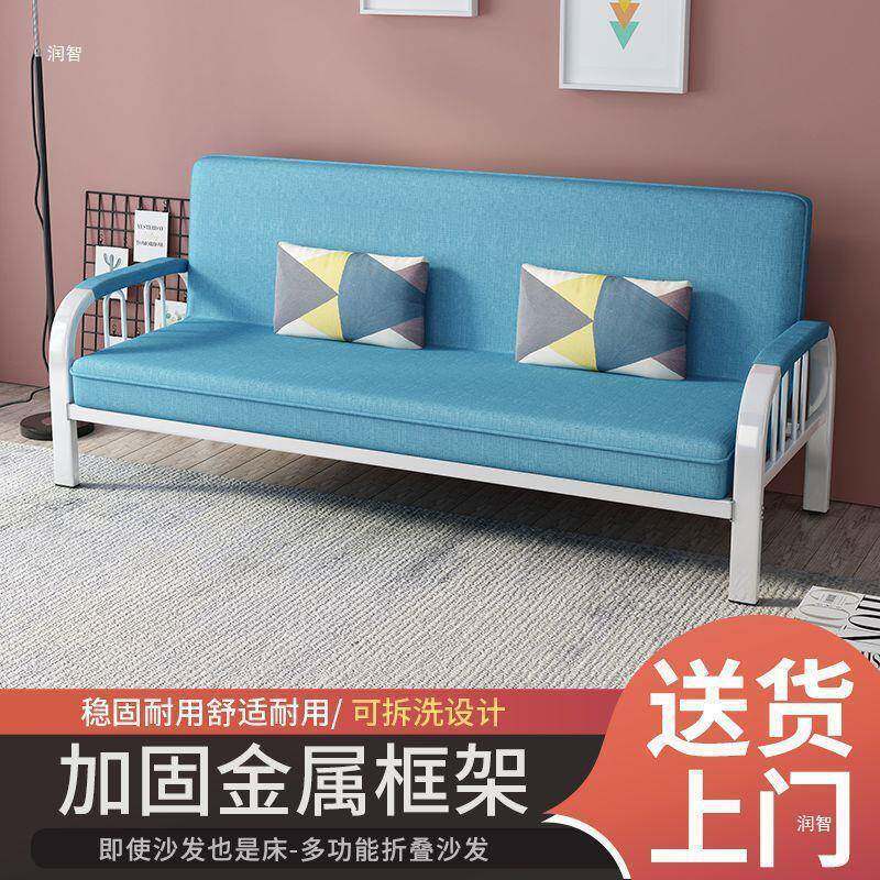 布艺沙发床两用客厅多功能简易出租房床小户型可折叠卧室铁艺经济