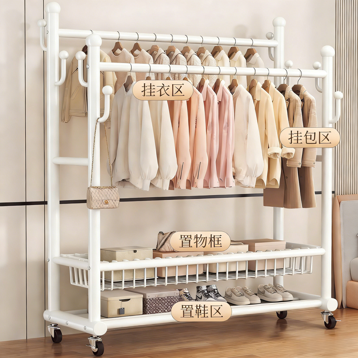 衣帽架落地卧室家用房间挂衣架置物晾衣架简易移动收纳挂衣服架子