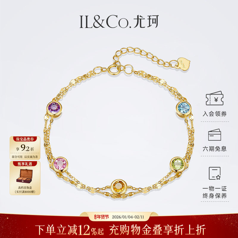 ILCO尤珂「五彩织恋」18K金多色彩宝手链天然碧玺彩宝双层手饰女