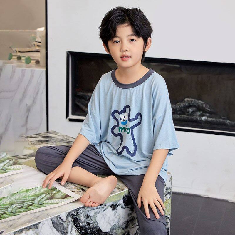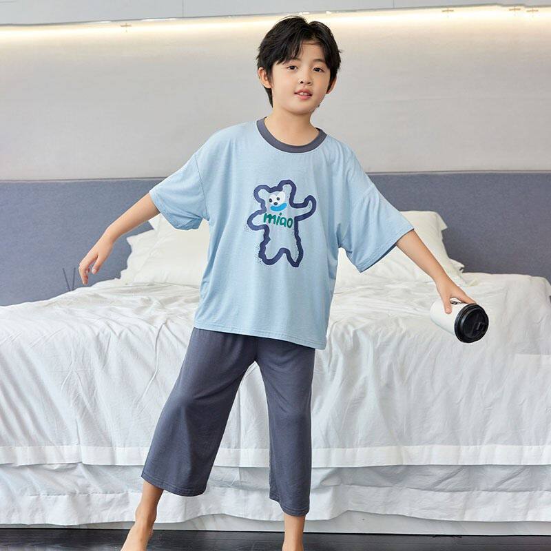 春夏季儿童睡衣短袖七分裤套装男女童睡衣男孩莫代尔中大童家居服
