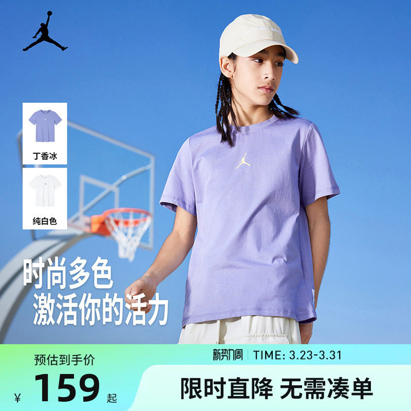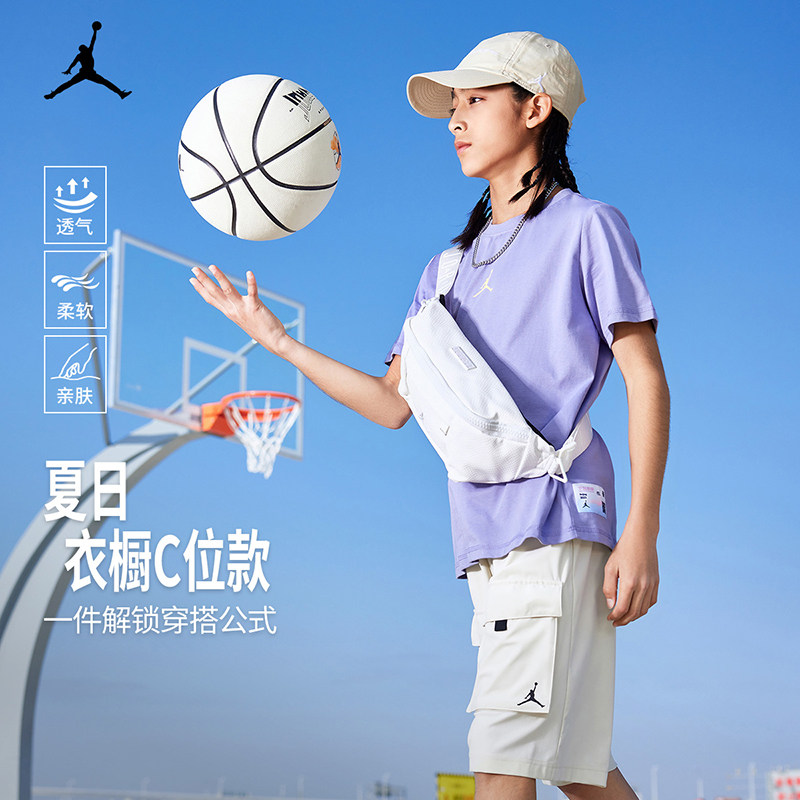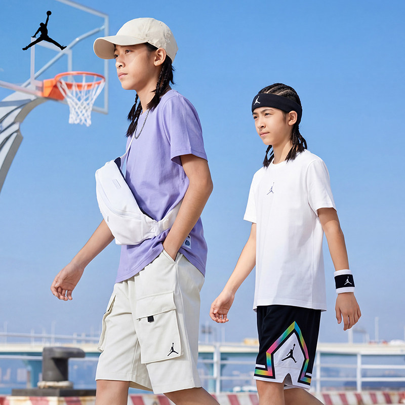 JORDAN儿童装男童短袖T恤夏季新款中大童运动上衣透气女童夏装潮
