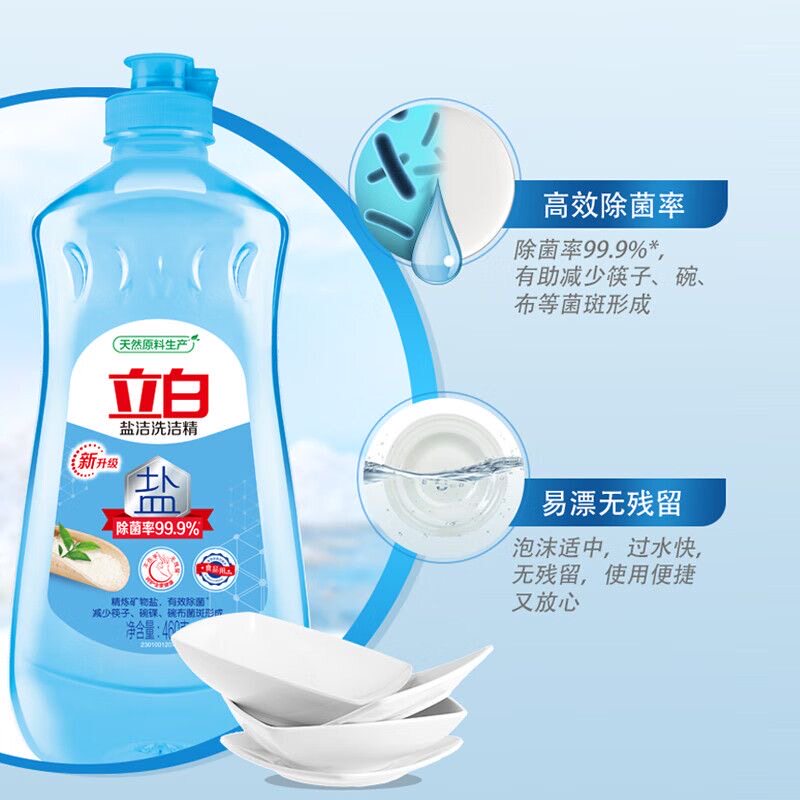 【便携宿舍小瓶】立白盐洁洗洁精460g食品用餐具洗涤剂果蔬可洗