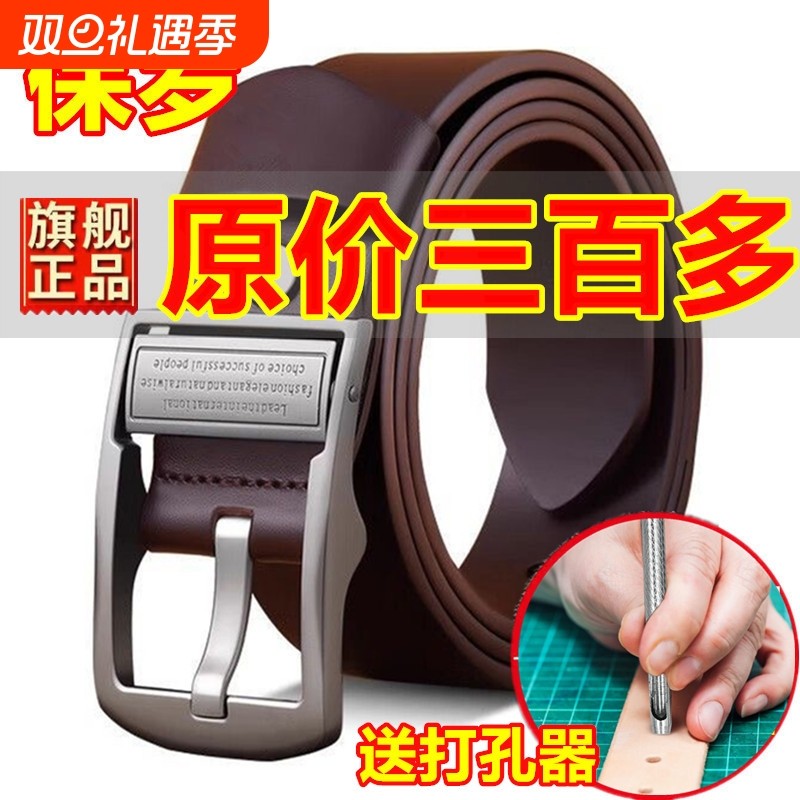 保罗正品男士皮带真皮针扣新款合金扣裤腰带男中青年休闲百搭裤带
