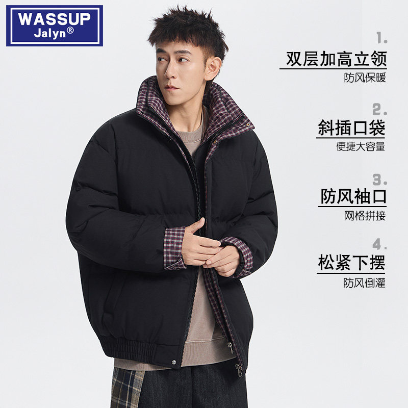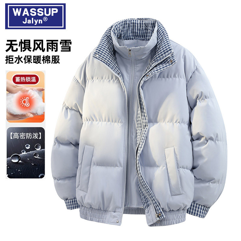WASSUPJALYN加厚保暖假两件棉服男女款冬季运动棉衣防风棉袄黑白