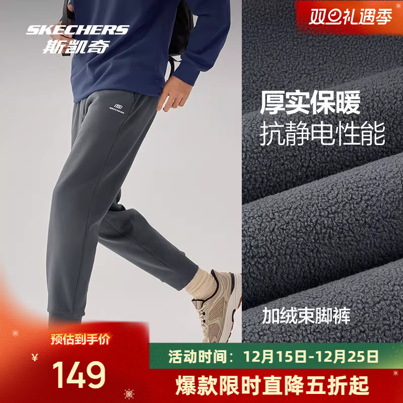 斯凯奇运动裤2025冬季男女同款加绒保暖针织长裤休闲束脚直筒裤子