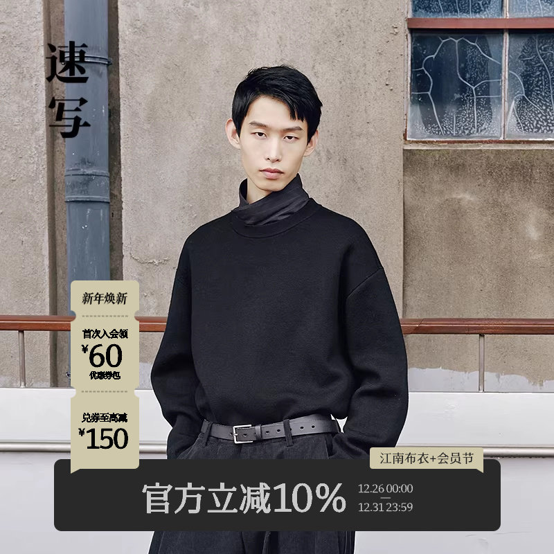 速写男装秋冬新款休闲宽松毛衫圆领套头简约保暖舒适纯色潮流上衣