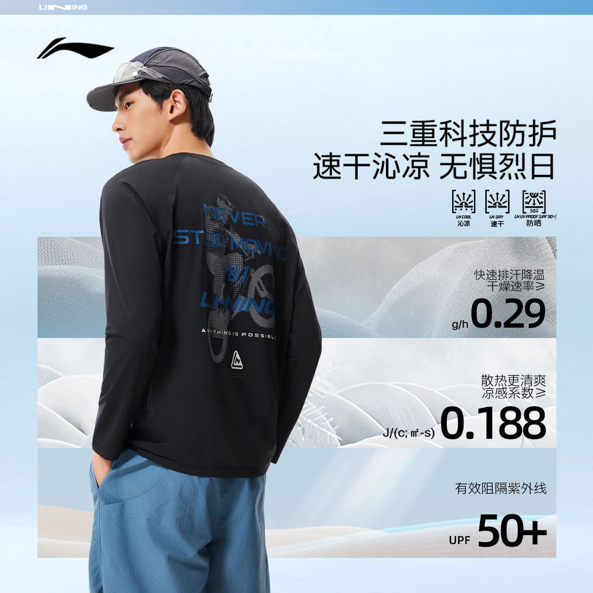 李宁速干长袖T恤男春季2026新款健身圆领宽松跑步防晒上衣运动服
