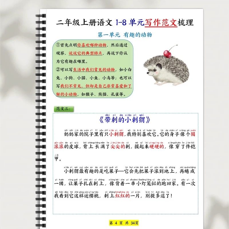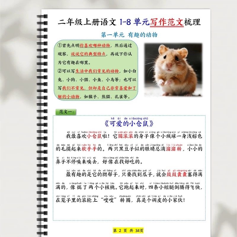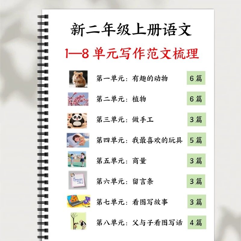 新版二年级上册语文1-8单元看图写话必背范文33篇作文写作A4彩印