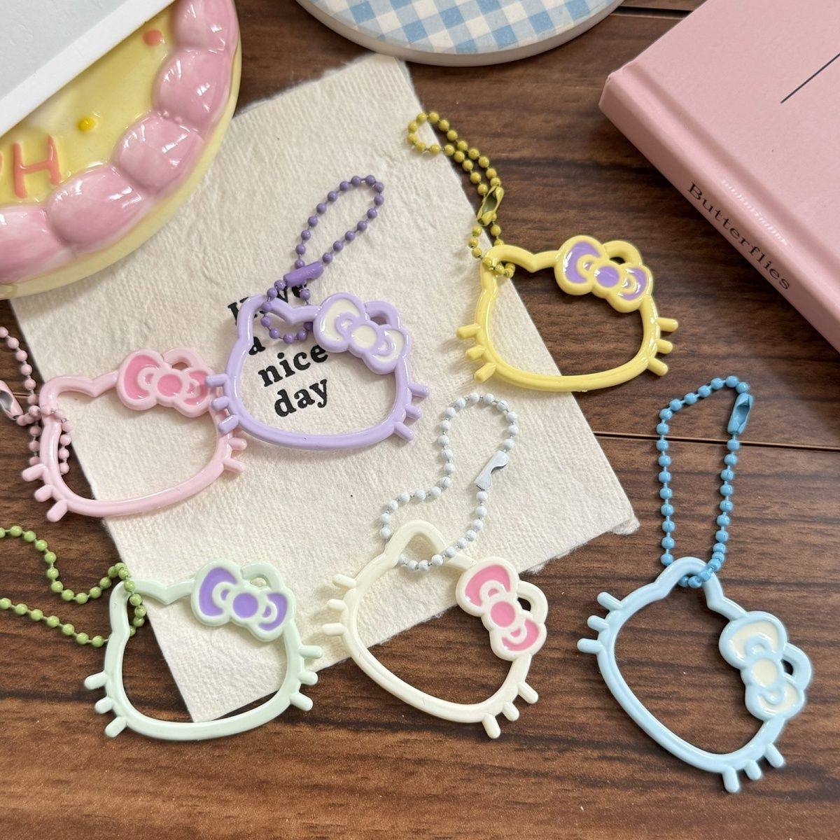 可爱糖果色镂空KT猫头钥匙链书包挂件ins百搭少女心挂件