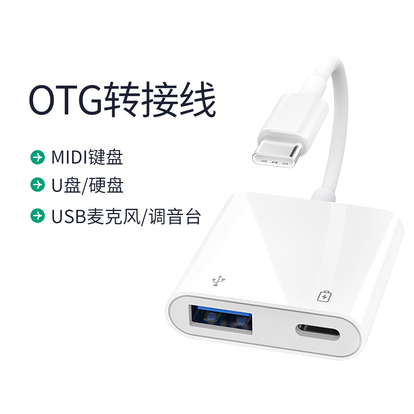 typec转USB3.0 OTG转换器适配17苹果15 16连接声卡解码器MIDI键盘