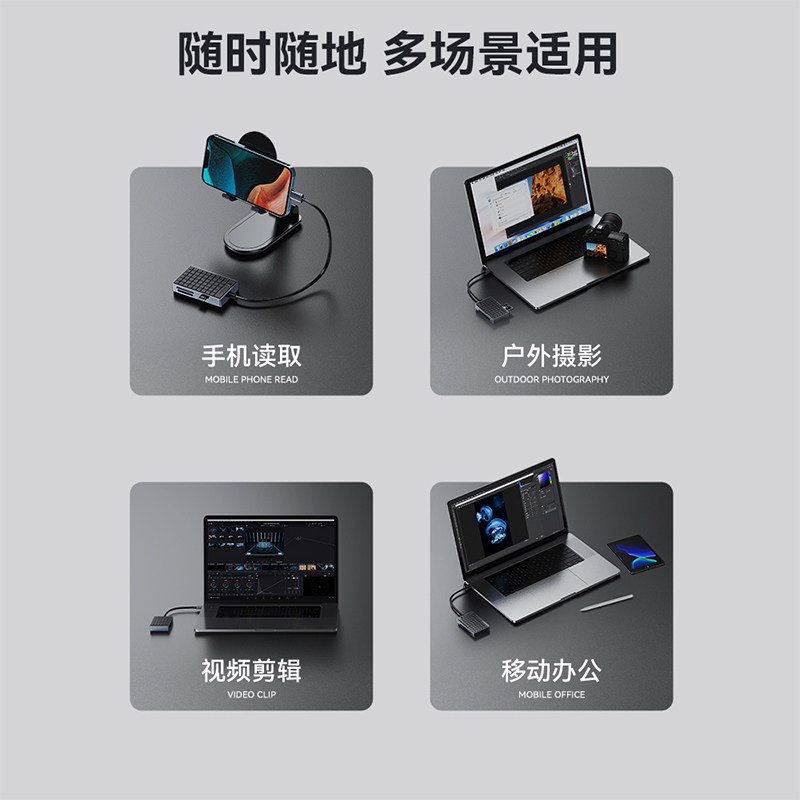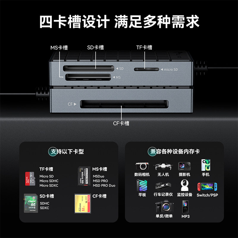 尤达大师读卡器多合一SD卡TF内存CF卡MS记忆棒手机OTG车载typec高速款USB3.0适用于佳能索尼相机单反
