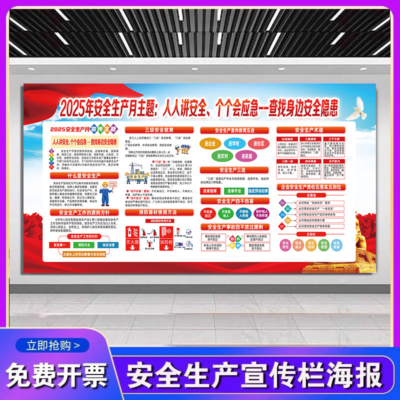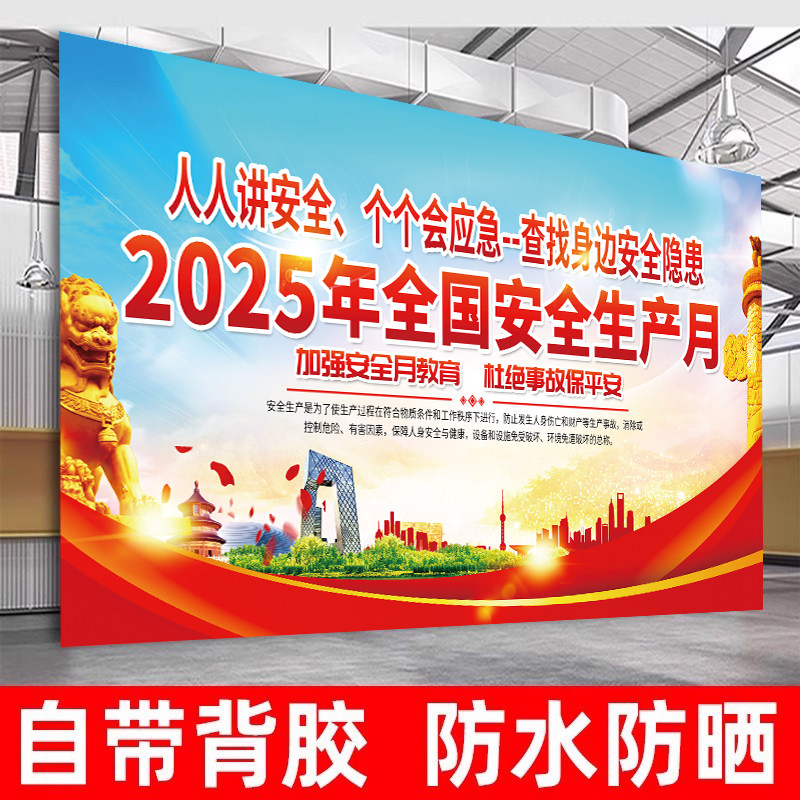 2025年安全月海报安全生产月人人讲安全个个会应急查找身边安全隐患主题海报工地工厂车间挂图标语宣传画贴纸