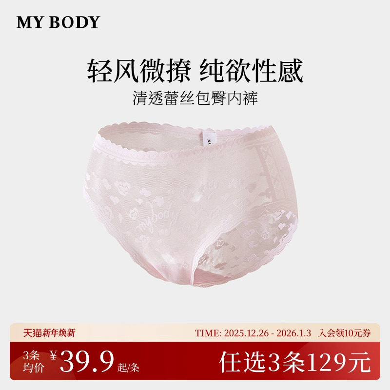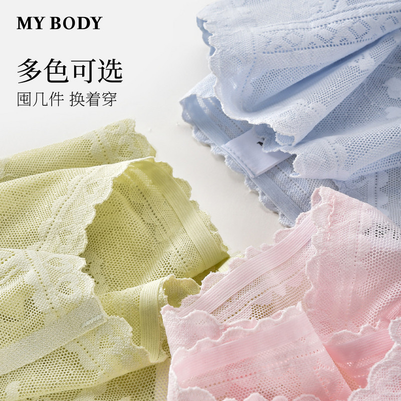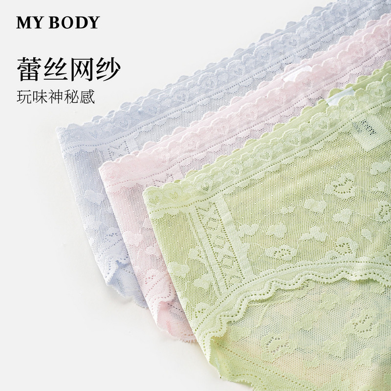 3件129|商场同款MYBOY内裤女清透蕾丝网纱包臀纯欲性感女生平角裤