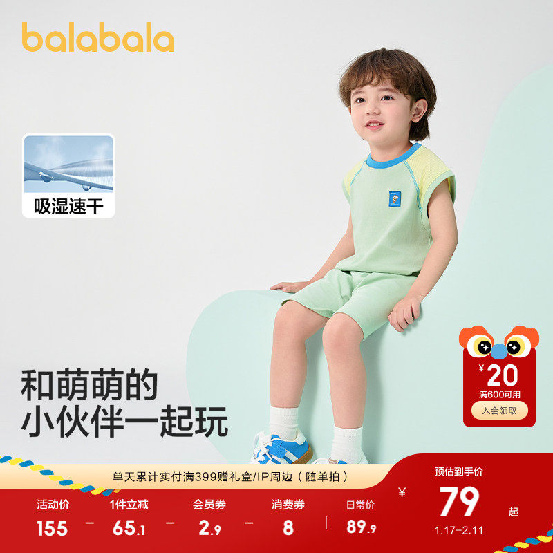 巴拉巴拉童装男童短袖套装儿童两件套速干宝宝衣服2025新款夏装潮