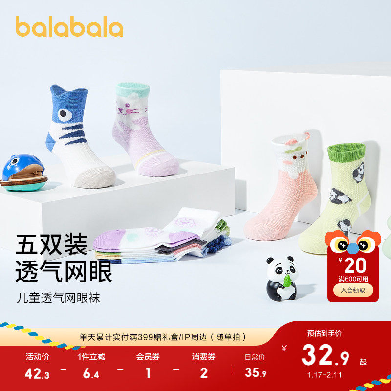 巴拉巴拉儿童袜子宝宝夏季网眼袜薄款透气婴幼儿短袜无骨潮五双装