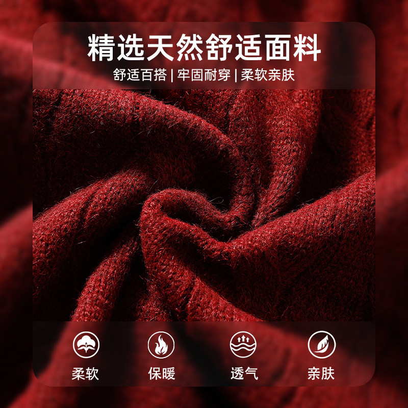 爸爸本命年红色毛衣新款中年男士冬季保暖打底衫中老年爷爷针织衫