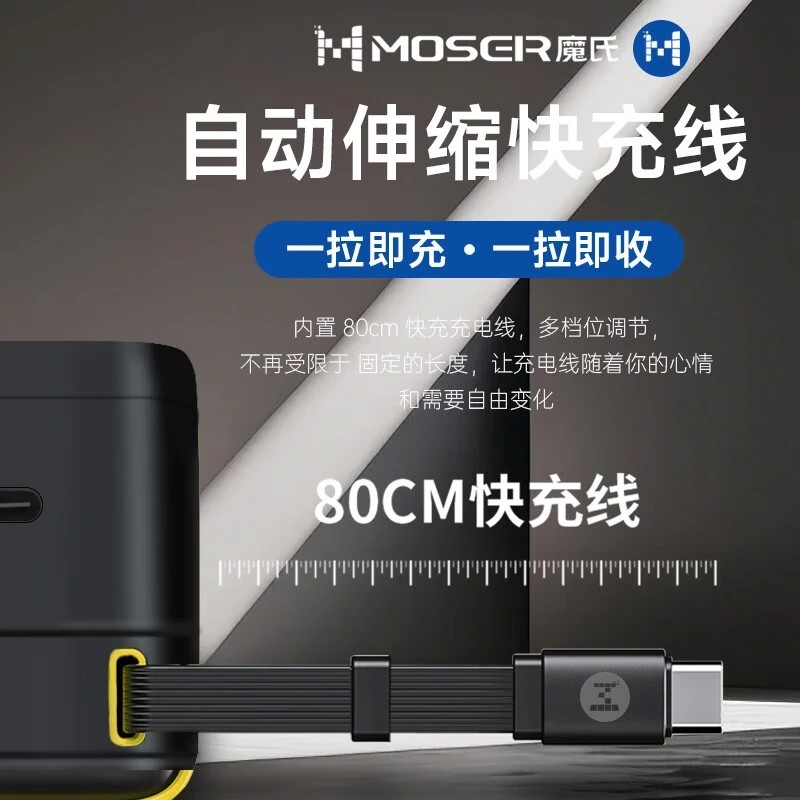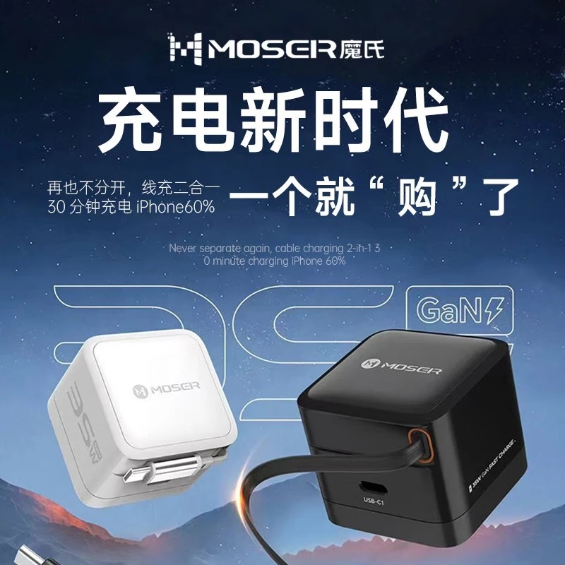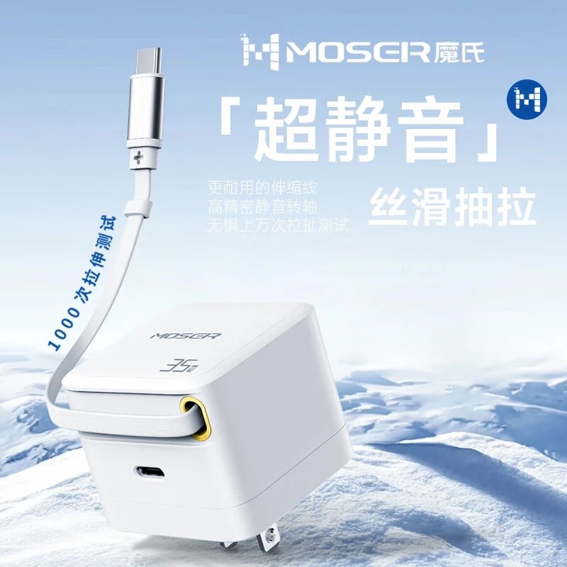 MOSER魔氏35W氮化镓桌面充电器多口快充头自带伸缩兼容PD30W内置伸缩数据线设计轻巧便携使用华为小平板
