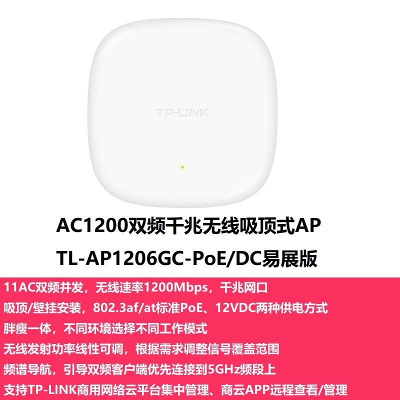 TP-LINK 千兆5g双频无线吸顶式AP WiFi无线AP 百兆AP302C 306C 452C 1206GC 1208 1906GC 四频3807GC-POE/DC