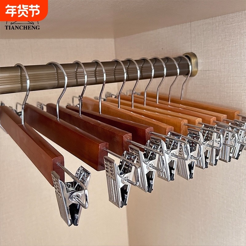 实木裤架家用衣柜内置裤夹裙子无痕强力服装店衣架裤挂木质裤夹子