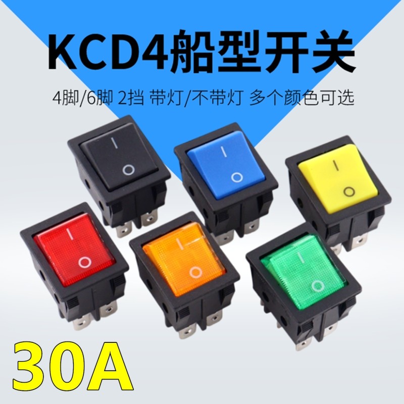 KCD4船型开关30A大电流电焊烤箱取暖器开关麻将机电器6脚2档铜脚