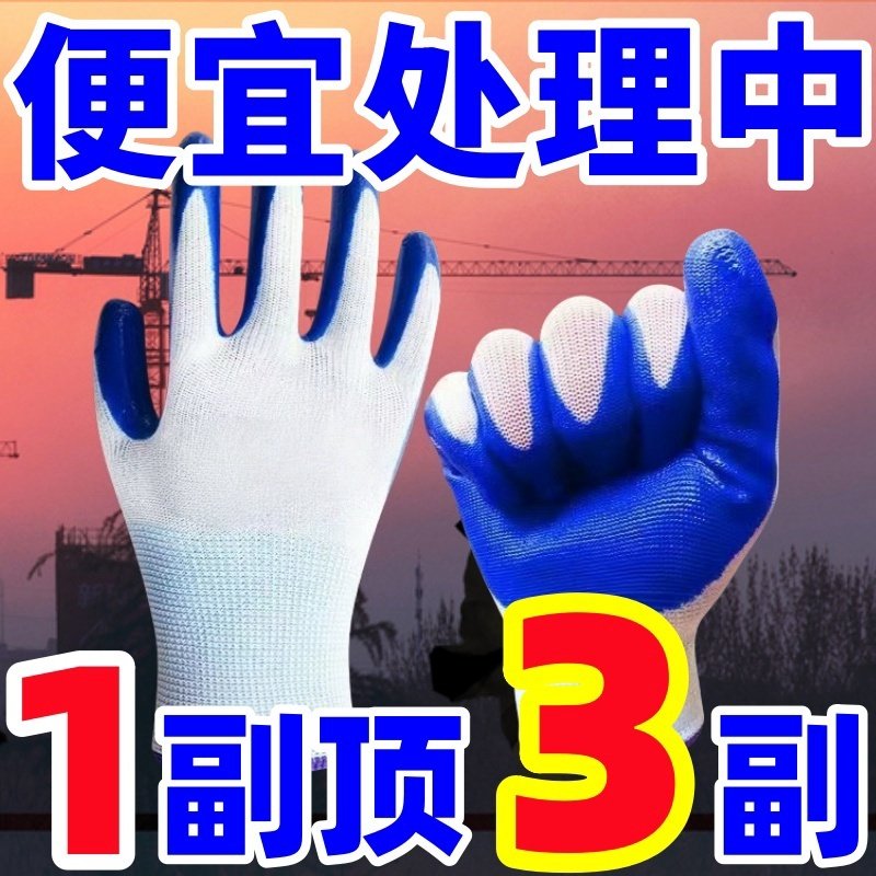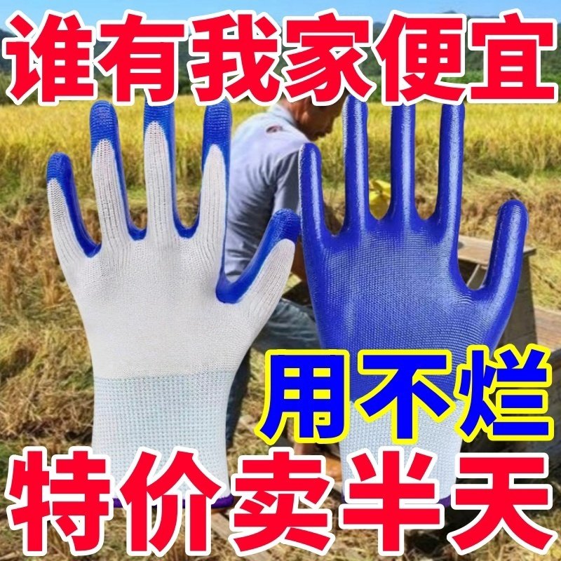 手套劳保手套乳胶橡胶手套工作劳保防滑防水耐磨胶皮手套工地干活