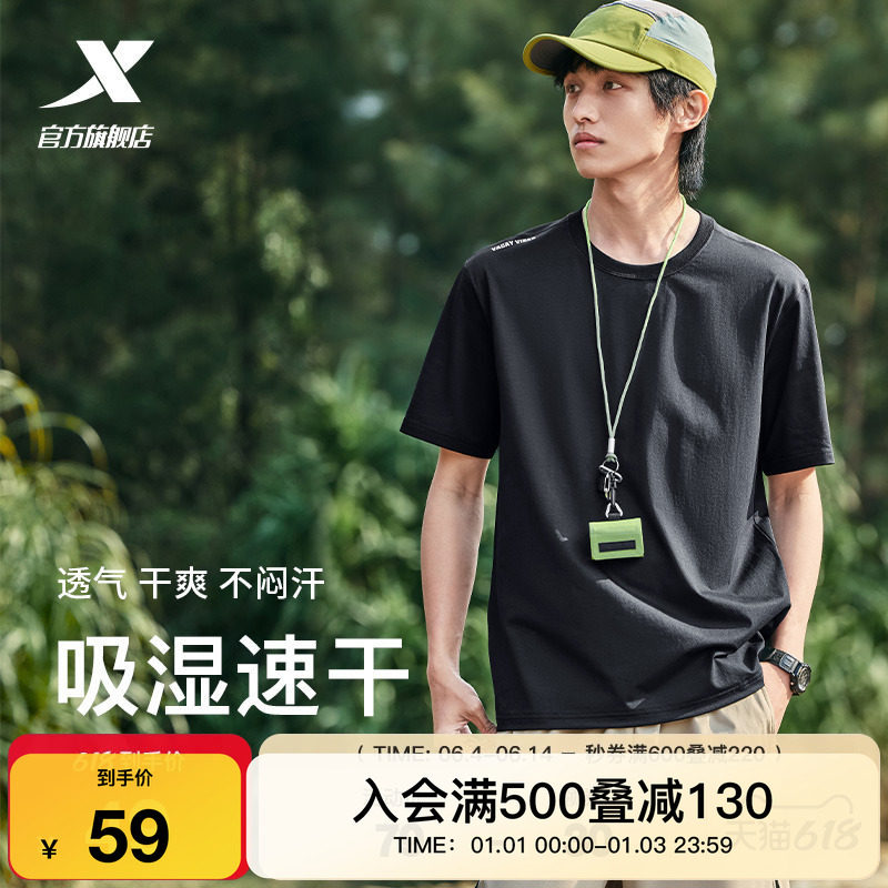 特步速干T男夏季宽松短袖冰丝户外跑步T恤透气上衣男士健身运动服