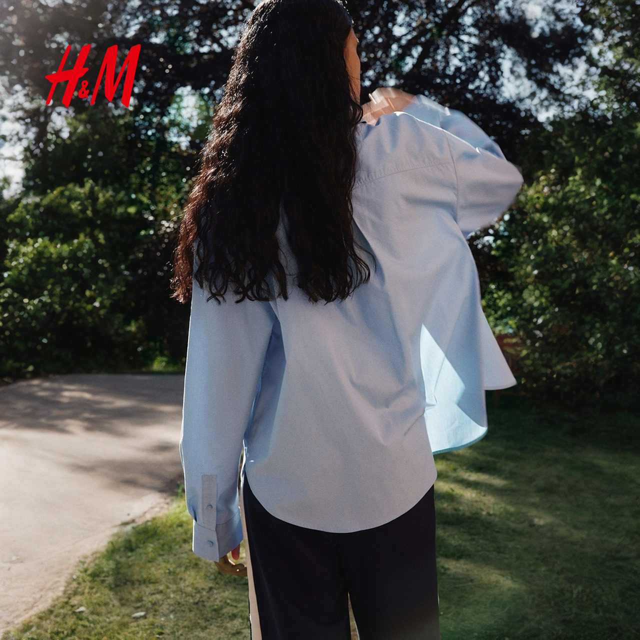HM女装衬衫2025年冬季新款时尚通勤打底大廓形棉质衬衫1294999