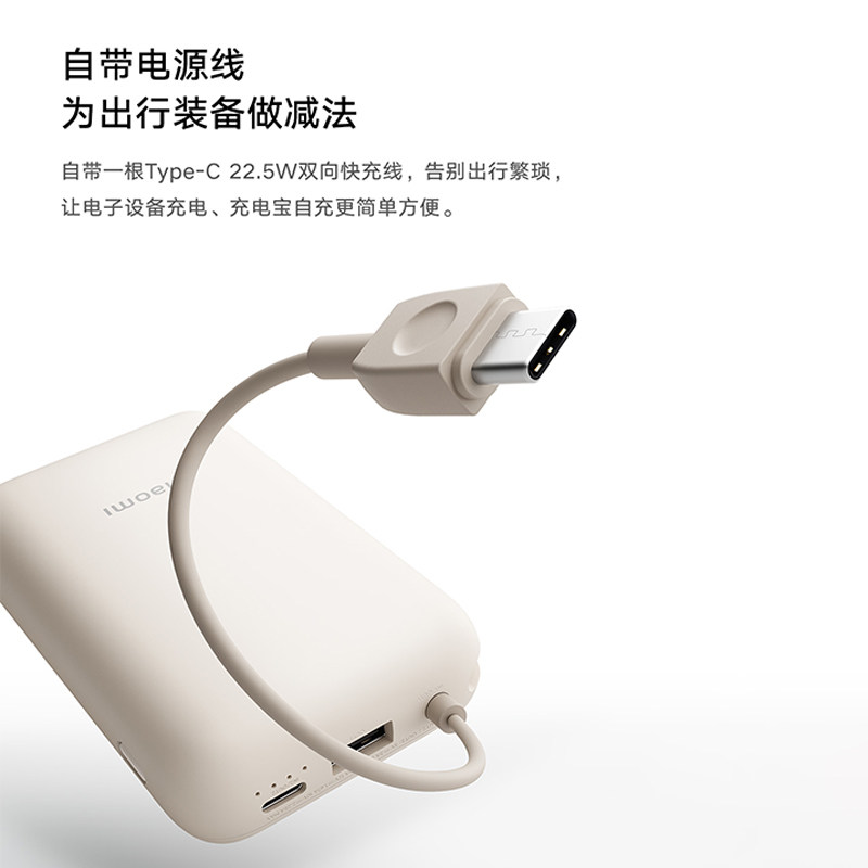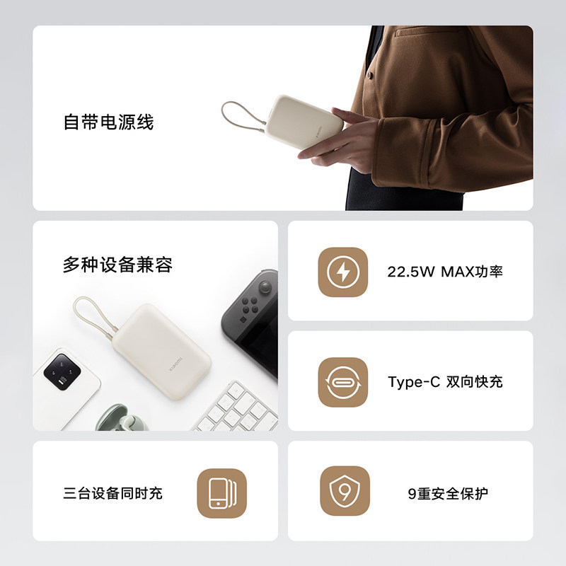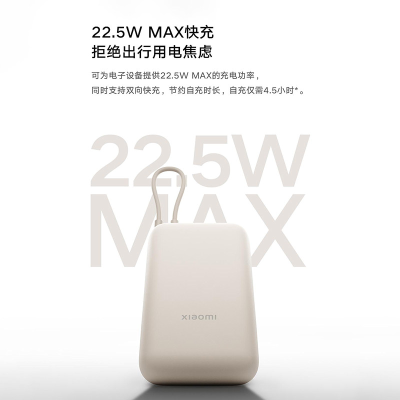 【3C认证】小米自带线充电宝20000 22.5W自带线双向快充小巧超大容量便携移动电源适用于华为小米苹果15手机