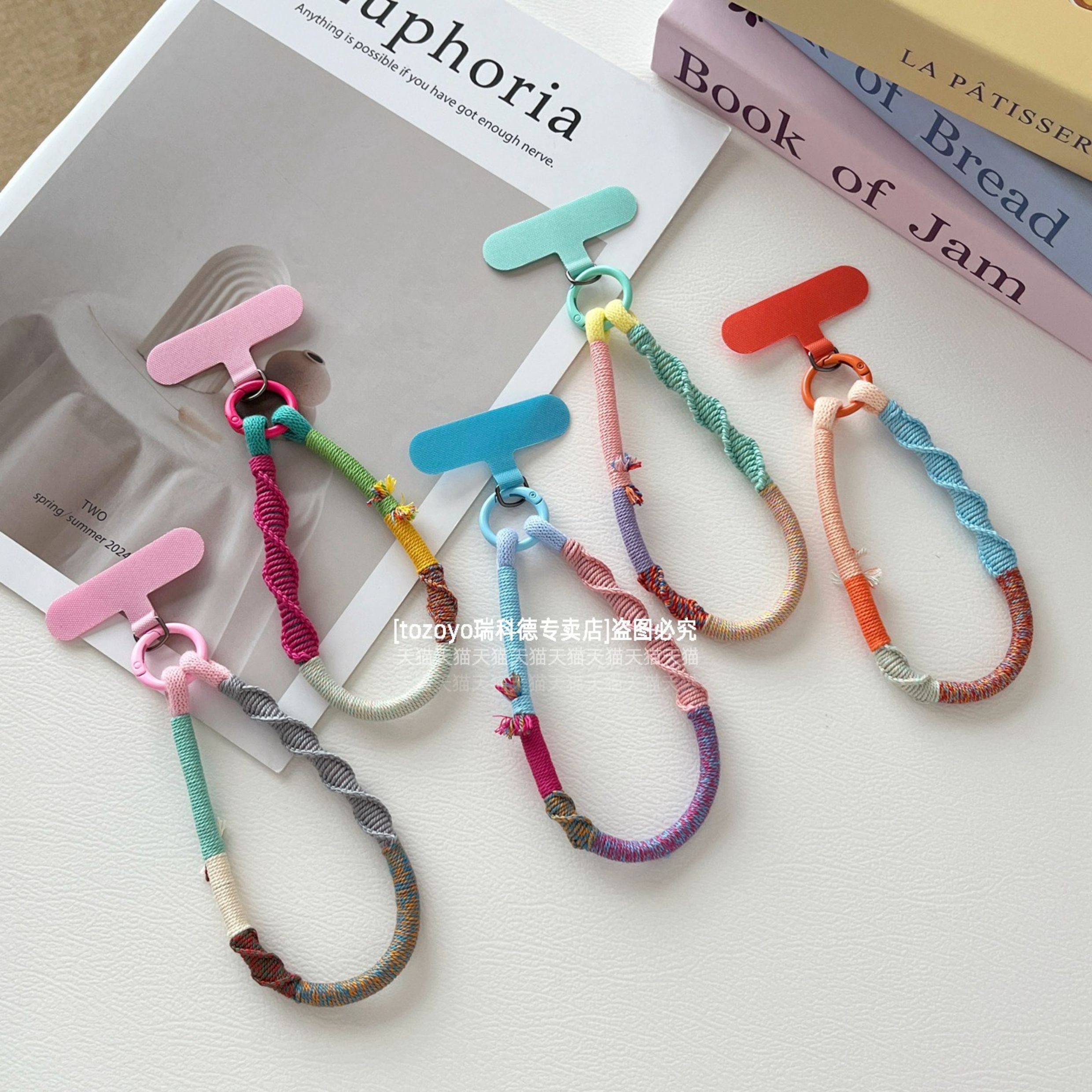 自制手作手机挂绳高级手工编织手腕绳链独特撞色防丢手绳结实短款腕带耐用棉质尼龙防盗女包包钥匙相机垫片壳