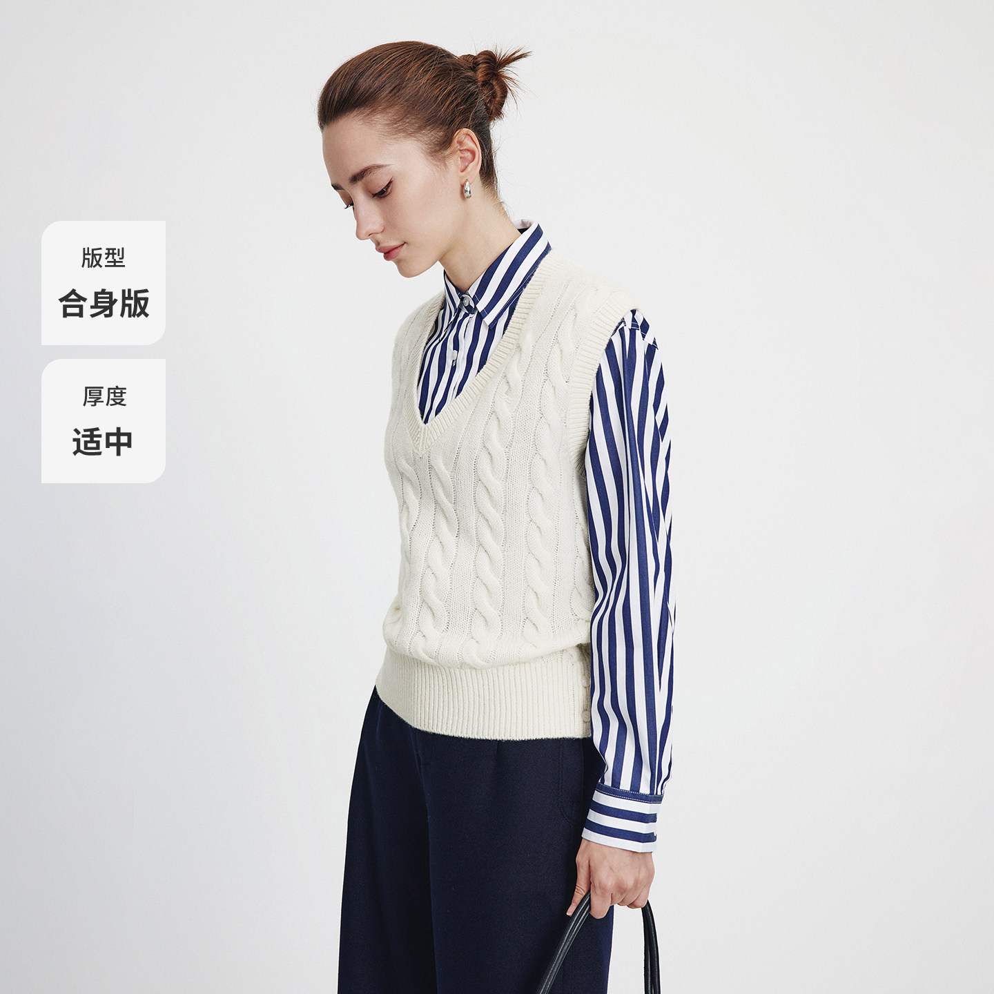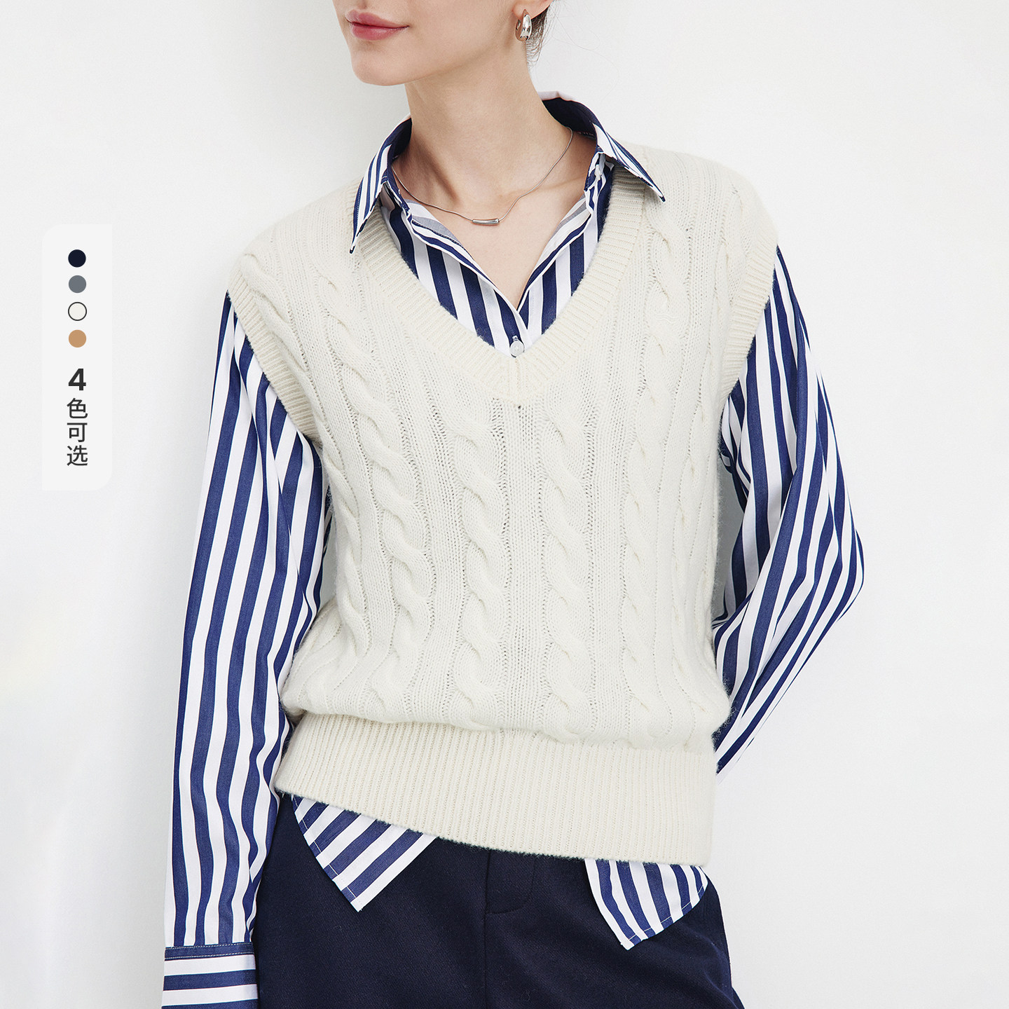 Navigare意大利小帆船无袖V领毛衣女25秋季新款高支精纺羊毛背心
