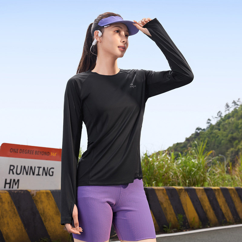 361运动t恤女2025秋季新款修身速干透气长袖T恤女士印花跑步上衣