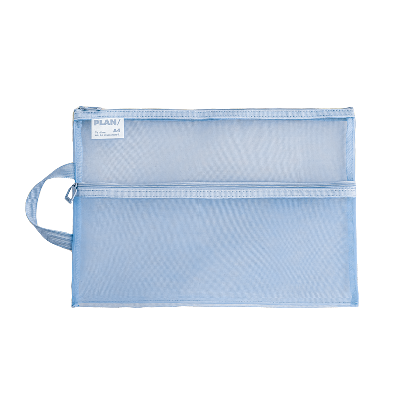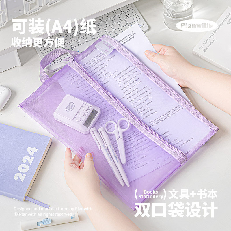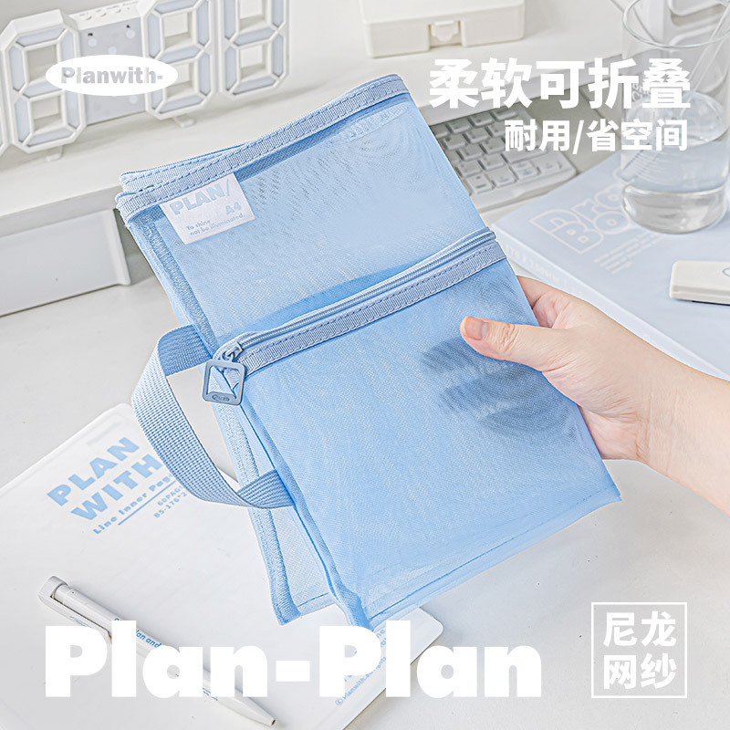 Planwith文件袋拎书手提袋网纱双层大容量拉链式学生装试卷档案袋