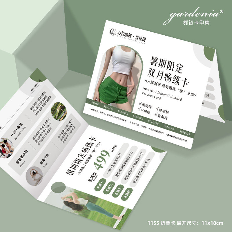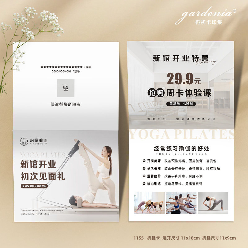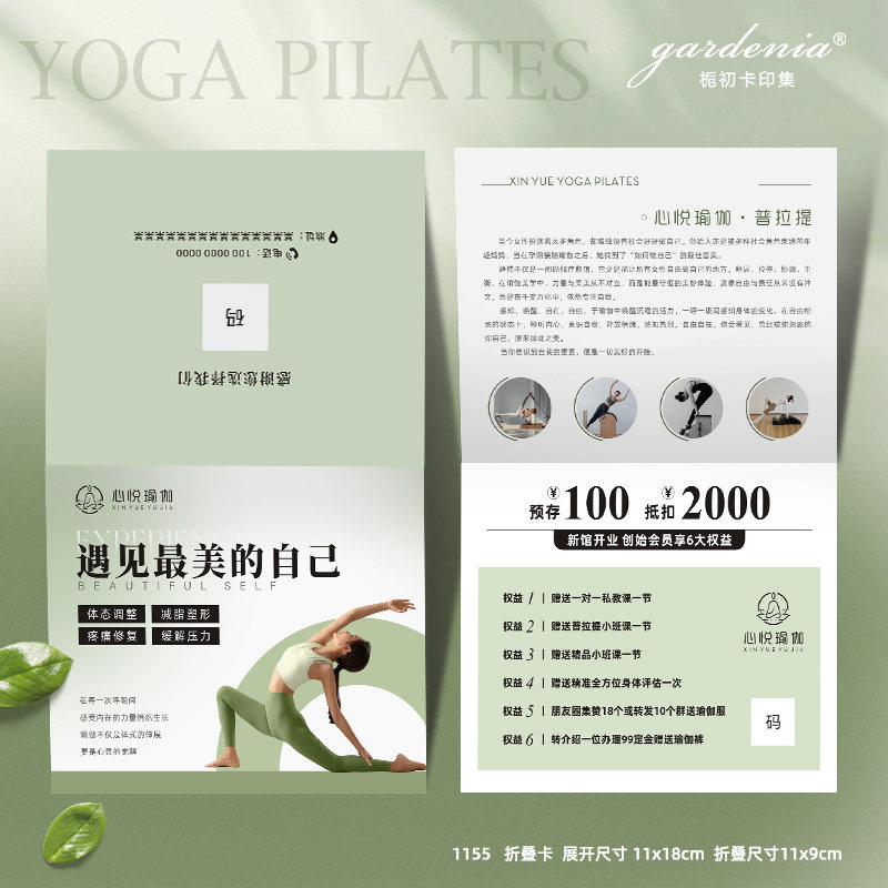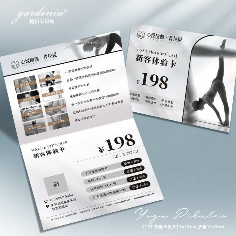 瑜伽体验卡定制普拉提健身减肥拓客试课卡月卡开业活动宣传折叠卡