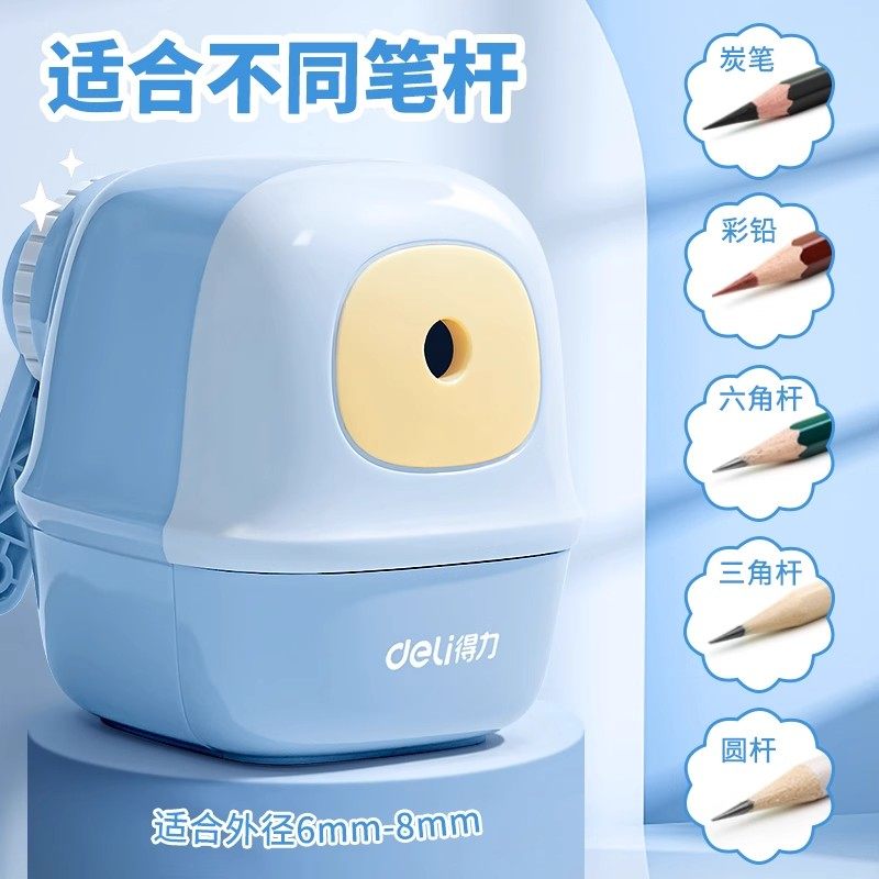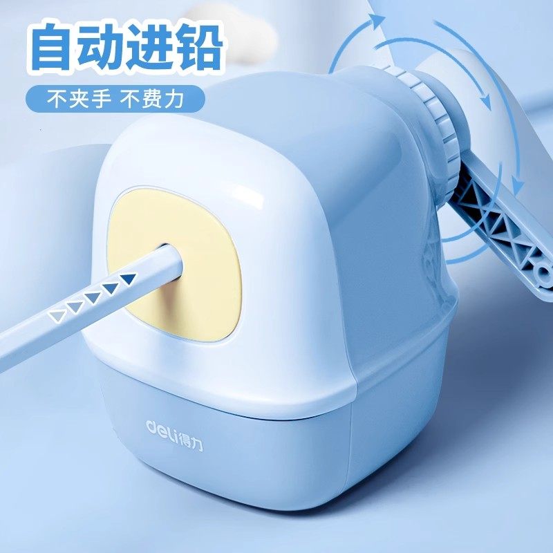 得力削笔机小学生专用手摇式小型自动进铅转笔刀铅笔刀大口径儿童卷笔器铅笔一年级削笔刀手动幼儿园削笔器