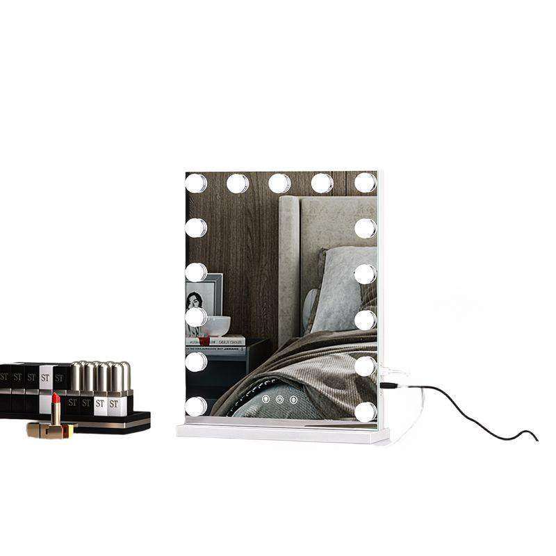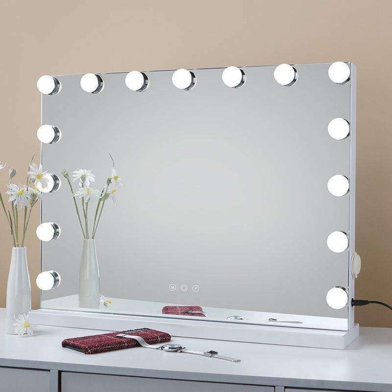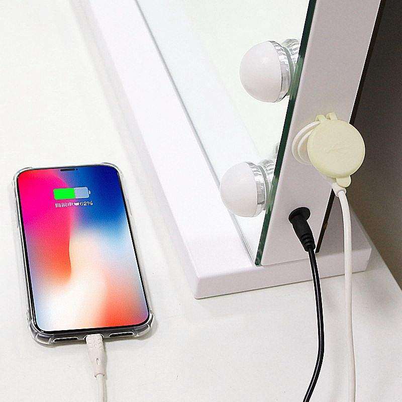 化妆镜梳妆台led灯泡充插两用大号桌面台式智能补妆镜高清镜子