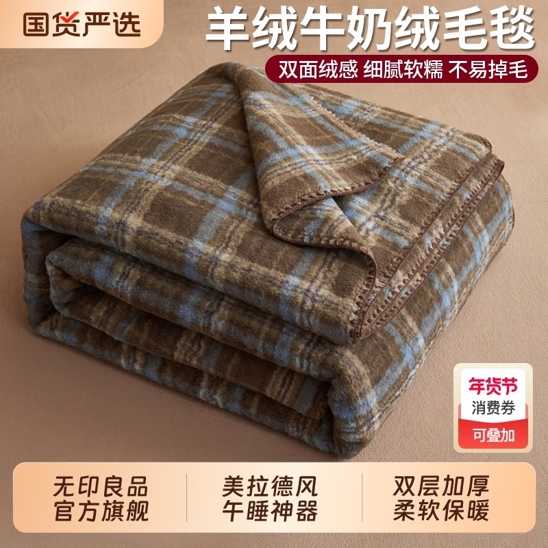 无印良品毛毯牛奶绒毯子美拉德沙发午睡办公室盖毯铺床床单小毯子